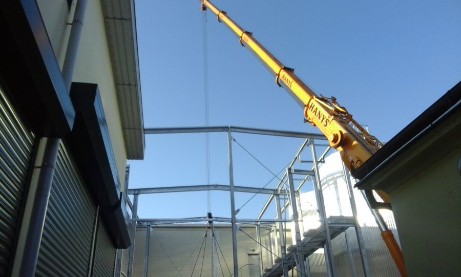 Zhotovení nosné ocelové konstrukce s opláštěním včetně střechy, ochozu ventilační turbíny na varně.