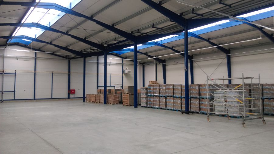 - Zateplená ocelová hala o půdorysném rozměru 19,5 m x 48,6m x 4,2m světlá výška v hale.