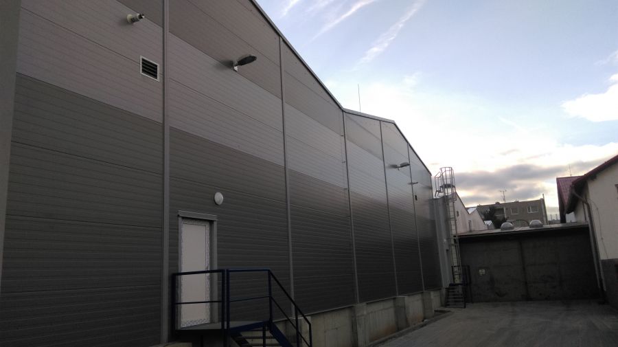 - Zateplená ocelová pultová střecha napojená na nově vystavěnou halu o půdorysném rozměru 8,8m x 37m včetně demontáže stávající nižší střechy a stávající ocelové konstrukce.