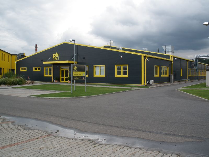 Tragende Stahlkonstruktion, Dach und Verkleidung beider Gebäude aus Polyurethan-Paneelen, Kunststofffenster im Verwaltungsgebäude, Beleuchtung von Produktionshallen mit Lichtbänder aus Polycarbonat Hohlkammerplatten